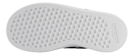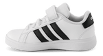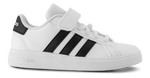 Adidas Grand Court 2.0 er en sporty low-top sneaker med de ikoniske 3-striber. Overdelen i imiteret skind med blødt meshfor giver behagelig komfort, og elastisk snøre med praktisk velcrolukning gør det nemt for barnet selv at tage skoene på. Den polstrede pløs, kant og indersål giver ekstra støtte, mens ydersålen i fleksibelt gummi med let profileret struktur sikrer stabilitet og komfortabel gang. Grand Court 2.0 er ideel til både aktive og afslappede dage og passer til fødder med normal bredde.