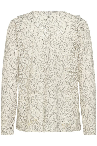B-Young bluse i et smukt blondemønster og fine flæser.