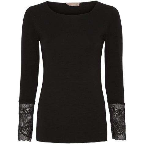 Lækker blød viskostrøje i sort og med fin blondekant ved ærmerne. Bruges under skjorter og strik. En lækker basis.