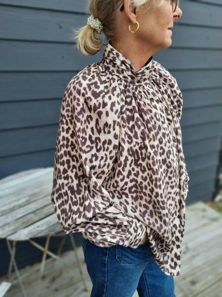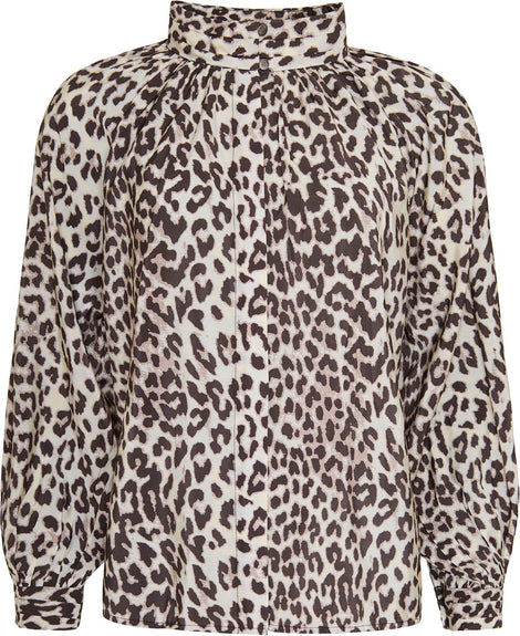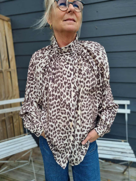 Ofelia bluse i et fint leoprint. Skjulte knapper ned fortil og kan lukkes op i halsen med søde knapper.