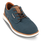 Bugatti sko til mænd der forener komfort og funktion i et let og casuelt design. Overdelen er fremstillet i tekstil-mesh med syntetiske overlejringer og tekstilfor der sikrer behagelig komfort. De regulerbare snørebånd giver en tilpasset pasform. Indvendigt er den udstyret med en blød, udtagelig memory foam-indersål, der former sig efter foden og øger komforten. Ydersålen i EVA er både let, fleksibel og tilbyder affjedring og stabilitet ved hvert skridt. Perfekt til manden, der ønsker en let og behagelig sko til et casual, men velklædt look.