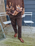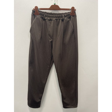Marta bukser i mørkebrun med fine striber. Lommer og har en smart ankellængde.