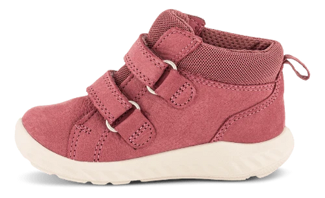 Skoens overdel er lavet i blødt nubuck-læder fra ECCO, og det indvendige meshfor skaber et behageligt og åndbart fodklima. De to justerbare velcroremme gør det nemt og hurtigt at få skoene på og af – også for små, utålmodige hænder.