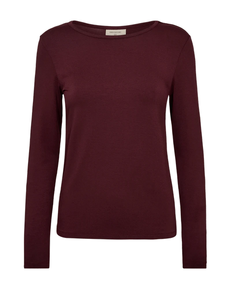 Langærmet t-shirt fra Freequent i en let og blød jerseykvalitet. Blusen er enkel i modellen med lange ærmer, en rund halsudskæring samt en elegant, tætsiddende pasform.