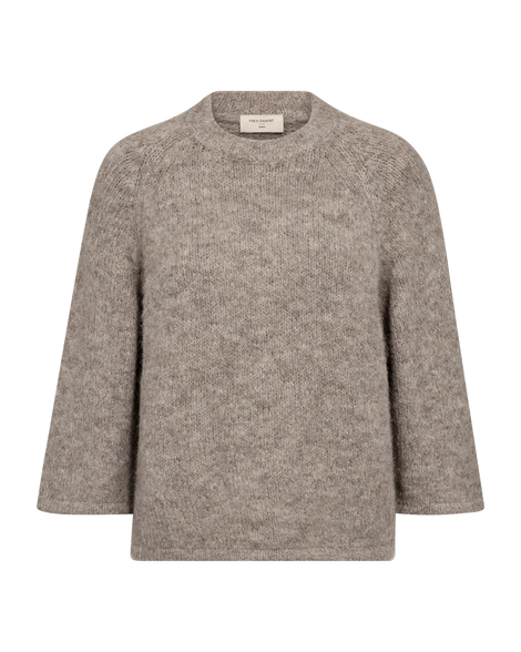 Pullover fra Freequent i blød, strikket kvalitet. Pulloveren er enkel i modellen med trekvartlange, vide ærmer, en rund halsudskæring, ribkanter samt en elegant, løs pasform.