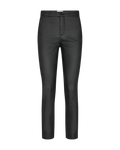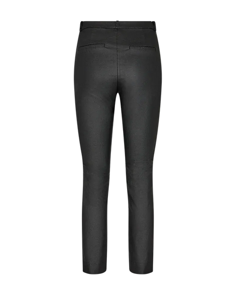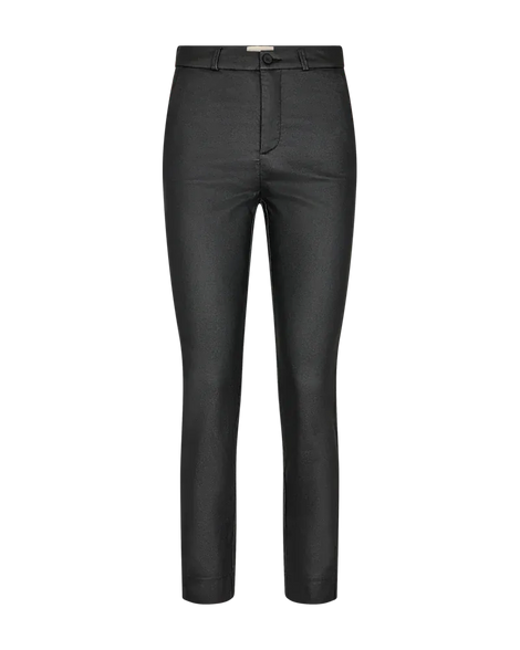 Bukser fra Freequent i en coatet kvalitet. Bukserne er enkle i modellen med knap- og lynlåslukning, sidelommer, en høj talje, slids ved anklen samt en tætsiddende pasform.