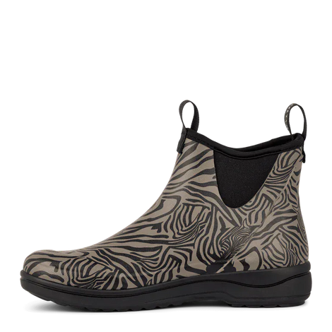 Støvlen er designet på den rummelige H-læst, der giver god plads til fødderne, og har stræk i siderne samt stropper foran og bagpå, så den er nem at få af og på.