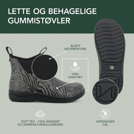 Denne gummistøvle løfter komforten til et helt nyt niveau. Det bløde, men kraftige gummi holder effektivt vandet ude, så dine fødder forbliver varme og tørre – selv på de vådeste dage.
