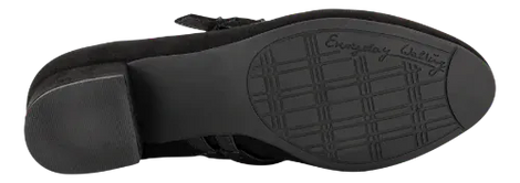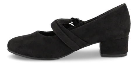 Elegante Mary Jane pumps fra Jana Softline med rund tå og en stabil blokhæl på 40 mm. De justerbare velcroremme gør, at skoen sidder sikkert og behageligt på foden. Overdelen er fremstillet i slidstærkt tekstil med ruskindslook og har blødt tekstilfor.