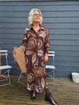 Smuk kjole fra Marta i de brune toner. Kjolen er gennemknappet.