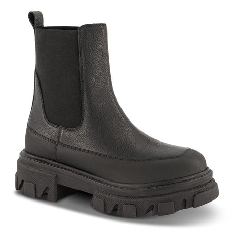 B&CO kort damestøvle i sort skind. Støvlen er med bred elastik i begge sider, så den er nem at komme i og samtidig giver et flot udtryk til støvlen. Den er med en god og kraftig skridhæmmende ydersål.