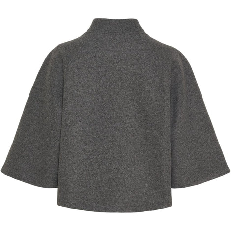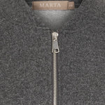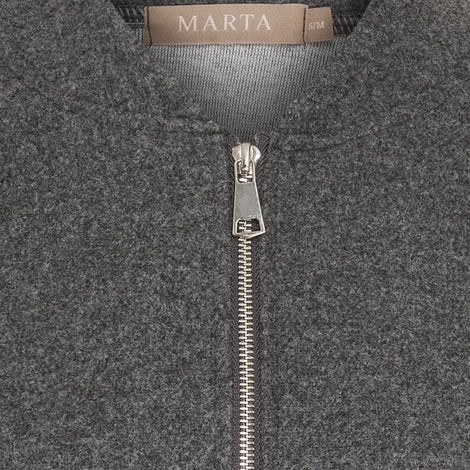 Smart jakke fra Marta i grå og med lynlås der kan åbne begge veje. Jakken er med store flotte ærmer. Brug som en cardigan indendørs og som en let jakke udendørs.