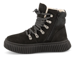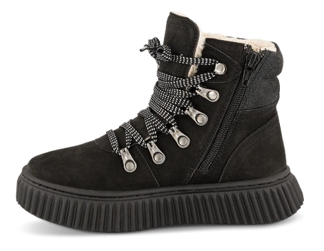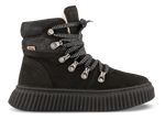 Støvlen er fremstillet i blød nubuck og har en vandafvisende tex-membran, som beskytter mod sne og slud. Indvendigt er den foret med varmt teddyfor, og de udtagelige indersåler – ligeledes belagt med teddy-uld – sikrer en behagelig temperatur hele dagen.