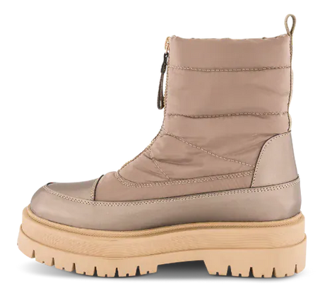 Det moderne chunky dun-look giver støvlen et trendy udtryk, mens bagstroppen og lynlåsen foran sikrer, at den er let at få af og på. Indvendigt bidrager de bløde indersåler, belagt med lunt teddy, til en komfortabel pasform, som gør støvlen ideel til både hverdagsbrug og lange dage på farten.