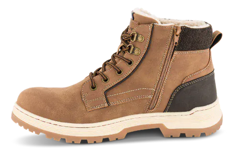 Norrliv herre vinterstøvle er skabt med en let konstruktion og designet til at beskytte mod vinterens kolde og våde dage. Overdelen er fremstillet i imiteret skind med en polstret filtbelagt hælkant. Den er foret med varm teddy, som giver behagelig varme og komfort. Den regulerbare snørelukning sikrer en optimal pasform og lynlåsen på indersiden gør det nemt at tage støvlen på og af. De udtagelige indersåler, belagt med varm teddy-uld, bidrager til en øget komfort, mens de lette, kraftige, profilerede TPR-ydersåler giver et solidt fodfæste og meget behagelig gangoplevelse.