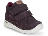 ECCO Prewalker i mørkelilla nubuckskind. Her får du en god sko til barnet, der lige er begyndt at gå. Skoen har to velroremme, som sikrer at skoen sidder godt til. Skoen kan åbnes godt op, så den er nem at komme i. Skoen har fast hælkappe for optimal stabilitet. Skoen har forstærket snude, så den beskytter skoen mod slid.