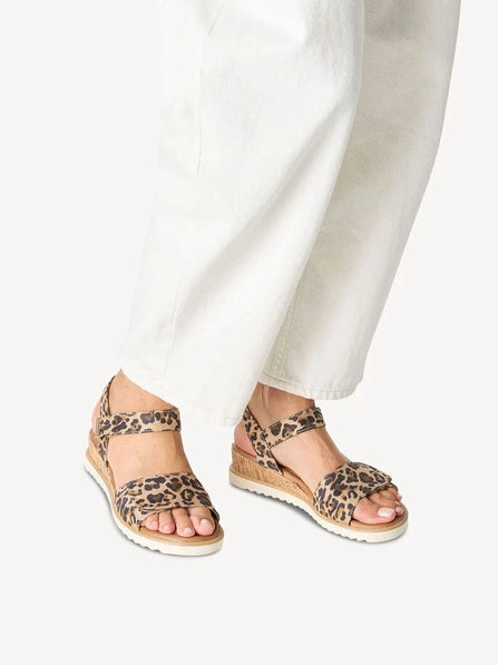 Tamaris sandal i et flot leoprint og med en fin 45 mm kilehæl.