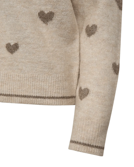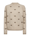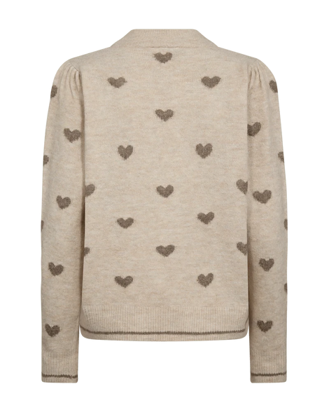 Pullover fra Freequent i en blød, strikket kvalitet med et fint hjertemønster. Pulloveren har lange pufærmer, en løs pasform samt ribkanter med en kontraststribe, der giver en flot effekt.