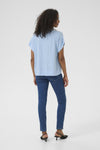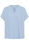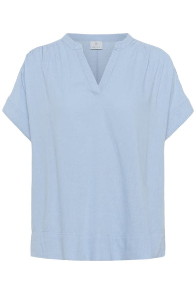 Kaffe bluse i en let viskose og hørkvalitet. I en smuk sommerblå