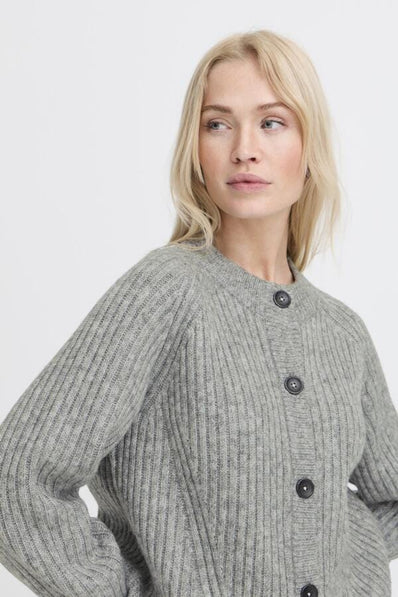 B-Young strik cardigan i grå og med fine knapper. En lækker blød kvalitet.