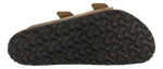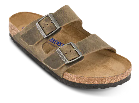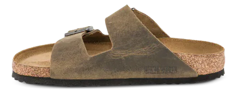 Overdelen er fremstillet i lækkert olieret skind med to brede remme og justerbare spænder, så sandalen nemt kan tilpasses både høj og lav vrist. Foden hviler komfortabelt på den anatomisk formede Soft-fodseng, som kombinerer kork og blødt latex med et ekstra blødt skumlag og en behagelig ruskindsoverflade.