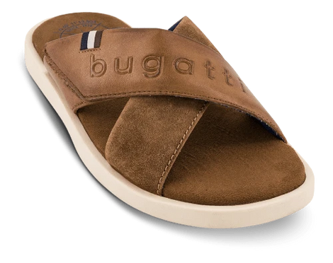 Bugatti slip-in sandal til mænd med krydsdesign kombinerer funktion og komfort i en sommerklar konstruktion. Overdelen er udført i en kombination af ruskind og glat skind, foret med blødt tekstil, hvilket giver en behagelig fornemmelse mod foden. En diskret velcrolukning giver mulighed for individuel tilpasning. Den polstrede indersål bidrager til en behagelig komfort, mens den fleksible TPR-ydersål sikrer stabilitet og bevægelsesfrihed. En ideel slip-in sandal til de varme dage.