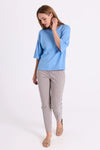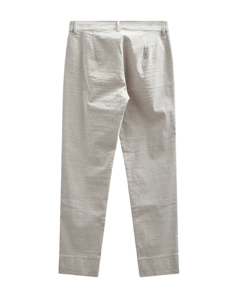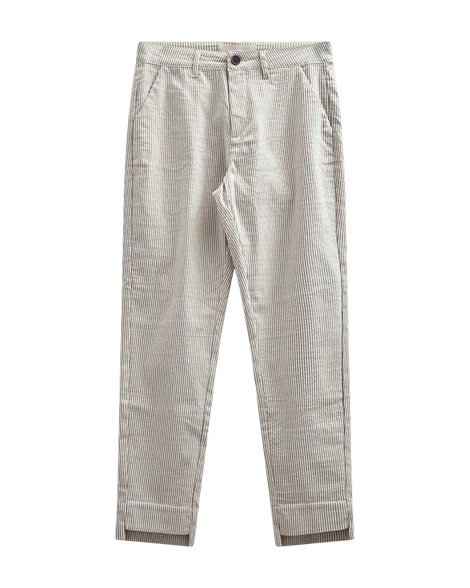 Bukser fra Freequent i en blød kvalitet med striber. Bukserne er enkle i modellen med en smal pasform, knap- og lynlåslukning, en høj talje, sidelommer samt slidser i de ankellange bukseben.
