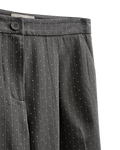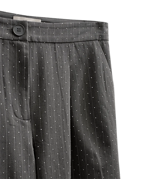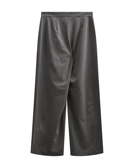 Bukser fra Freequent i en blød kvalitet med et nålestribet print prydet med similisten. Derudover har bukserne en høj talje, knap- og lynlåslukning samt læg i de lange, brede ben.