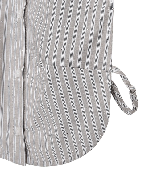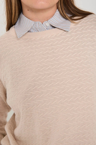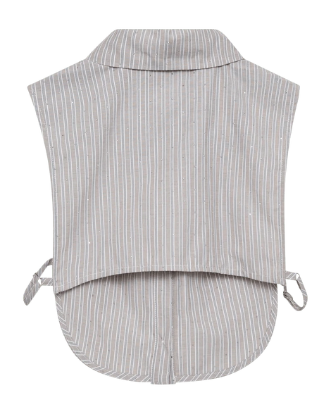 Krave fra Freequent i en blød kvalitet med yarndyed striber og allover similisten, der giver en flot effekt. Kraven har justerbare stropper i siderne, en klassisk skjortekrave samt knaplukning på fronten.