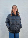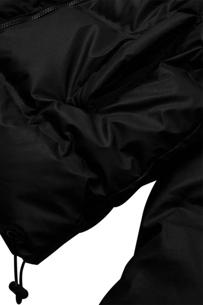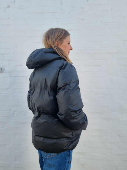Jakke fra Freequent i en mat, coated kvalitet med tykt og isolerende syntetisk fyld, der sikrer varme og komfort. Jakken har 2-vejs lynlåslukning, sidelommer med lynlås, snøre i hætten samt elastiksnøre i bunden.