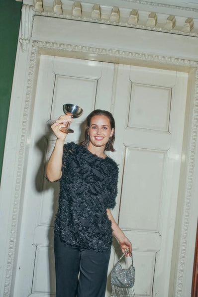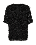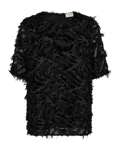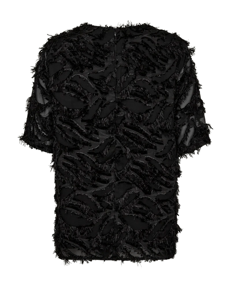 Bluse fra Freequent i en blød kvalitet med fine, fjerlette frynser og fuld foring i kroppen. Blusen har en skjult lynlåslukning på ryggen, halværmer, en rund halsudskæring samt en elegant A-facon.
