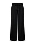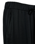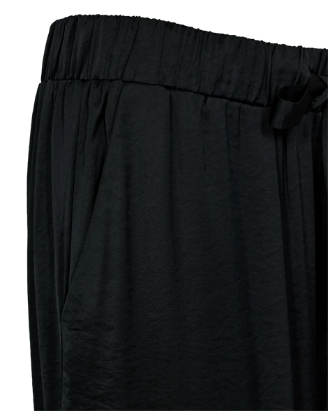 Bukser fra Freequent i en smuk satinkvalitet. Bukserne er enkle i modellen med en høj talje, sidelommer, elastik og bindebånd i taljen samt vide bukseben med en elegant piping-detalje i bunden.