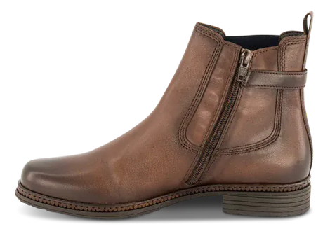 Kort og klassisk støvle fra Gabor i brun skind. Støvlen er med elastik og indvendig lynlås.