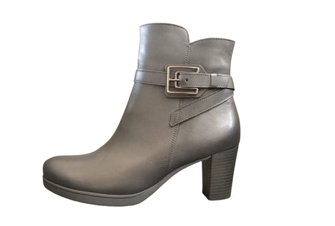 Gabor kort damestøvle i glat sort skind. Støvlen er med indvendig lynlås, så den nemt kommes i og af. Den er med smart spænde. Den er på en ca. 7 cm hæl, dog føles den ikke så høj, da der er et ekstra stykke sål under forfoden.