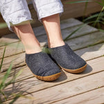 Vælg tøffel modellen med naturgummisål, hvis du er typen, som kunne finde på, at gå udenfor med dine glerups og gerne vil kunne tage dem nemt af og på.
