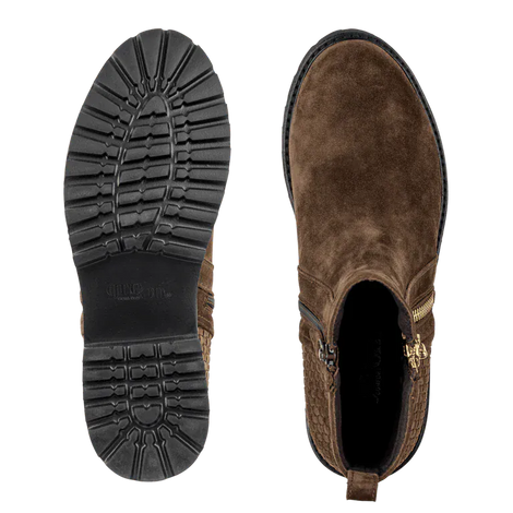 Vores Berlin Bene er en elegant nyfortolkning af den klassiske Chelsea-støvle – perfekt til efterårets skiftende vejr og stilfulde hverdage. Støvlen er fremstillet i blødt ruskind og prydet med en dekorativ guldlynlås på ydersiden, der giver et feminint og eksklusivt udtryk. På indersiden finder du en praktisk lynlås, så støvlen er nem at tage af og på.