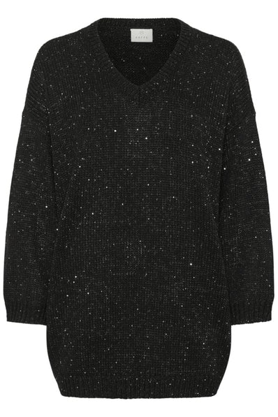 Kaffe strik i sort og med glimmer. En rummelig pasform