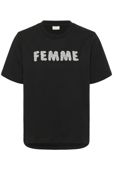 Kaffe t-shirt i sort og med et fint print i sølvglimmer.