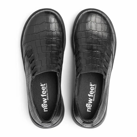 Denne stilrene loafer fra New Feet kombinerer klassisk design med moderne komfort og funktion – perfekt til dig, der ønsker en sko, du nemt kan tage på, og som samtidig giver god støtte hele dagen.