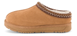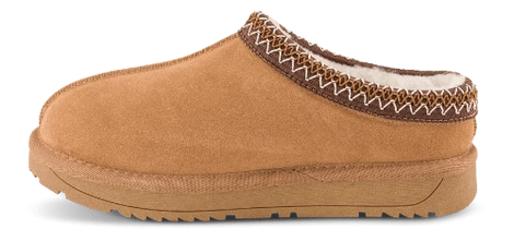 Overdelen er lavet i blødt ruskind og afsluttet med en dekorativ kant, der giver et feminint og stilrent udtryk. Indvendigt er clogsene foret med lun teddy-uld – både i overdelen og på indersålen – som omslutter fødderne i blød varme og giver en behagelig følelse hele dagen.