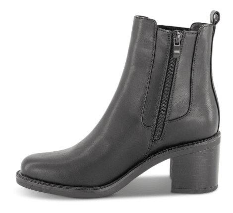 Norrliv damestøvle i sort. En smart chelsea støvle der kombinerer et klassisk og stilrent design. Overdelen er udført i imiteret skind og foret med et blødt tekstilfor, som giver en behagelig fornemmelse. Elastikkile på ydersiden og lynlåsen på indersiden gør det nemt at tage støvlen på og af. Bløde indersåler øger komforten, mens de fleksible TPR-ydersåler med en 60 mm blokhæl giver en stabil og behagelig gangoplevelse.