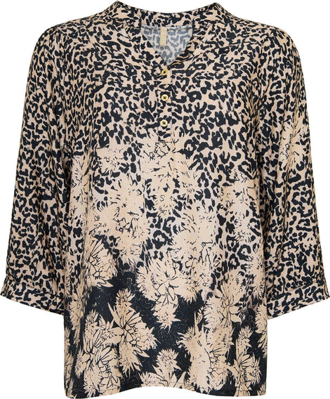 Smuk bluse fra Ofelia med et fint print. Små knapper fortil. En let viskose kvalitet.