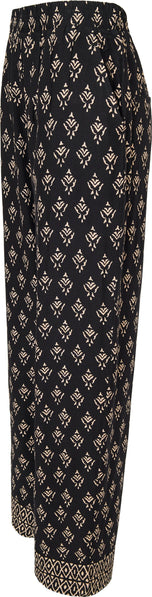 Lette bukser fra Ofelia i sort og med et smukt print. Bukserne er med lomme i hver side og god elastik i livet. En let viskose kvalitet.
