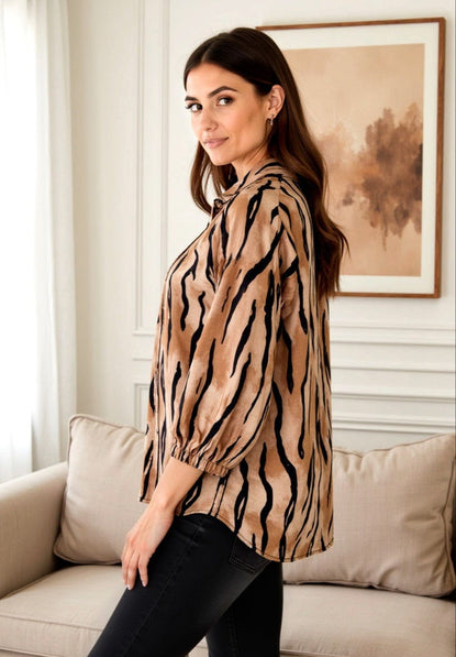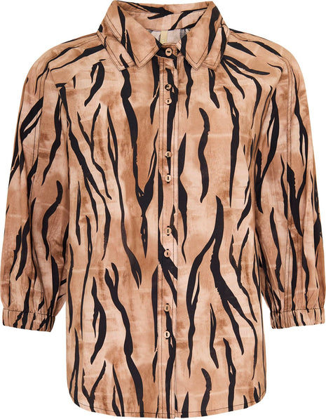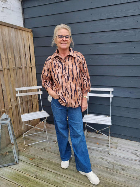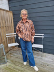 Ofelia bluse i et smukt mønster og de brune toner. Gennemknappet og med fine beklædte knapper.