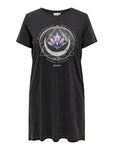 Fremstillet i blød og åndbar bomuld, som er lavet af naturlige fibre og giver en behagelig følelse hele dagen. Kjolen har en klassisk O-hals, korte ærmer og en flatterende knælængde, der passer perfekt til både sneakers og sandaler.