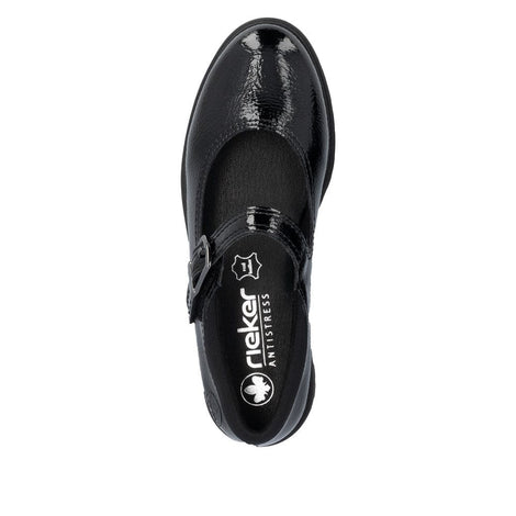 Rieker damesko i en flot ballerina model med spænde over. En god ydersål og antistress såler. Flot til både hverdag og fest.