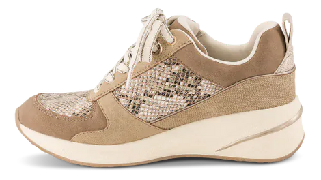 Smart sneakers fra Tamaris i en flot farvekombination i de lyse toner. Smart mønster på siden af skoen. Skoen er både med snørrebånd og lynlås.